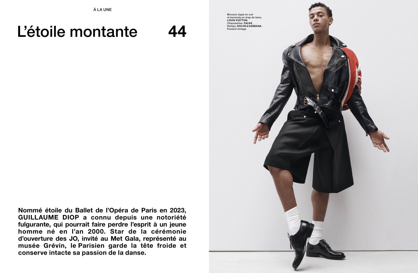 En couverture du Numéro Homme 50, deux incarnations de la grâce contemporaine : Guillaume Diop, danseur étoile de l’Opéra de Paris, et Lucky Love, performeur libre et incandescent, tous deux photographiés par l’immense Jean-Baptiste Mondino. Entre audace et sensualité, ces deux artistes révèlent chacun à leur manière la beauté du mouvement.