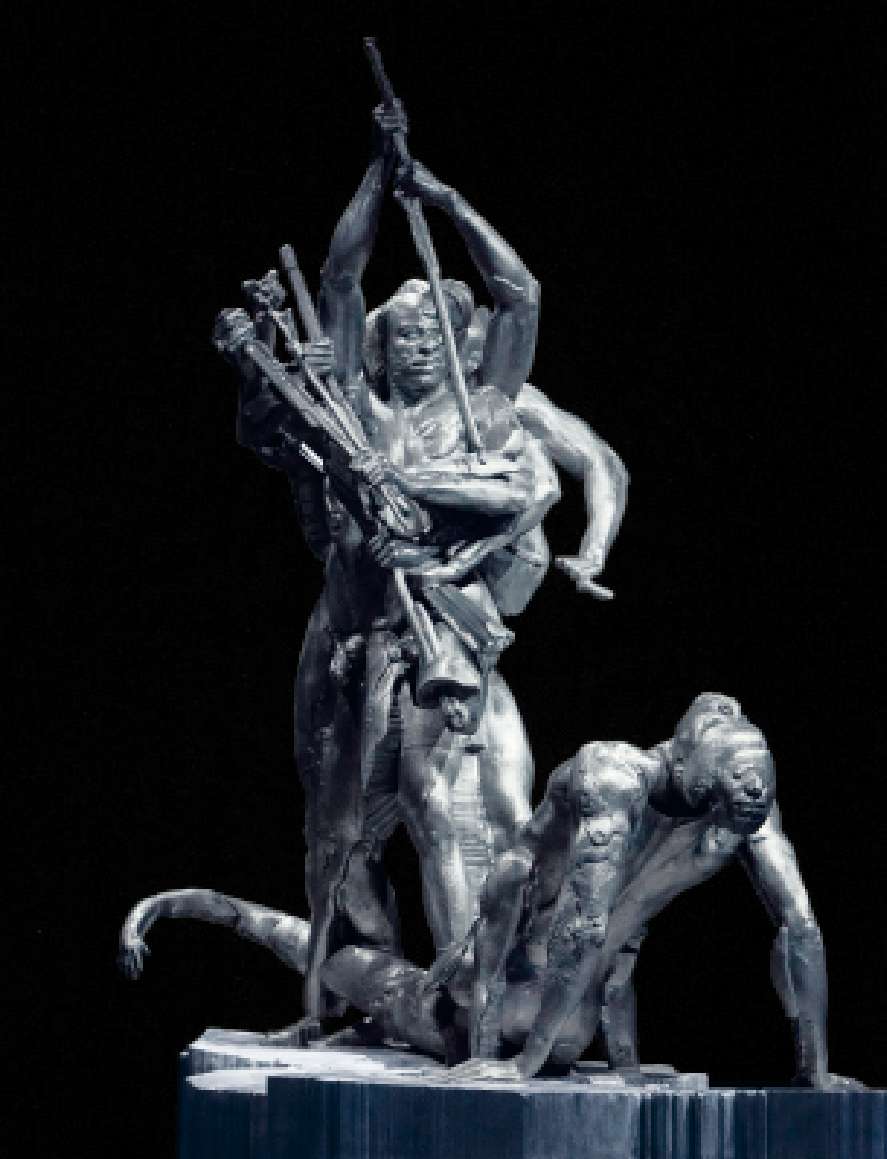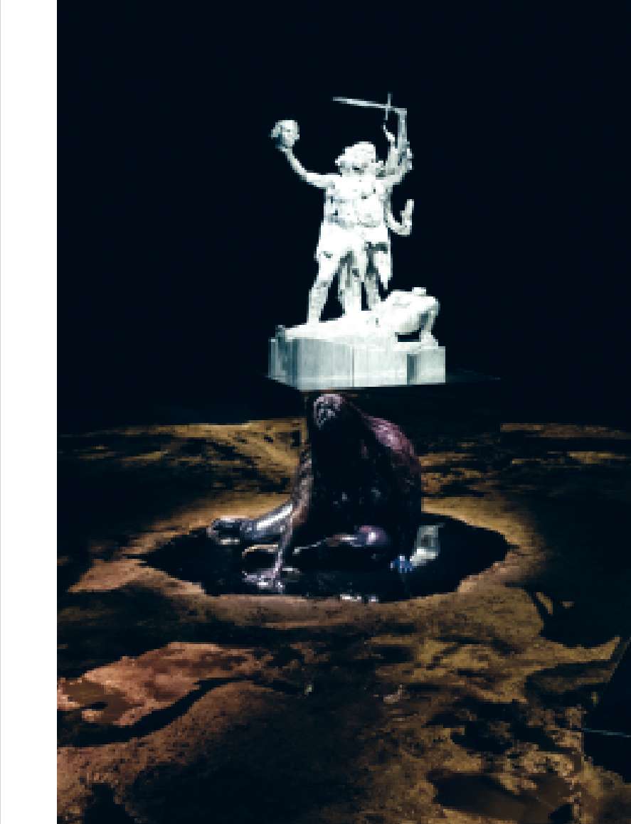 Miles Greenberg a présenté de nouvelles sculptures monumentales en fonte d’aluminium ainsi qu’une performance inédite interprétée par la chanteuse Yseult dans son exposition co-présentée par L’Alliance New-York “Gods of Solaris”.