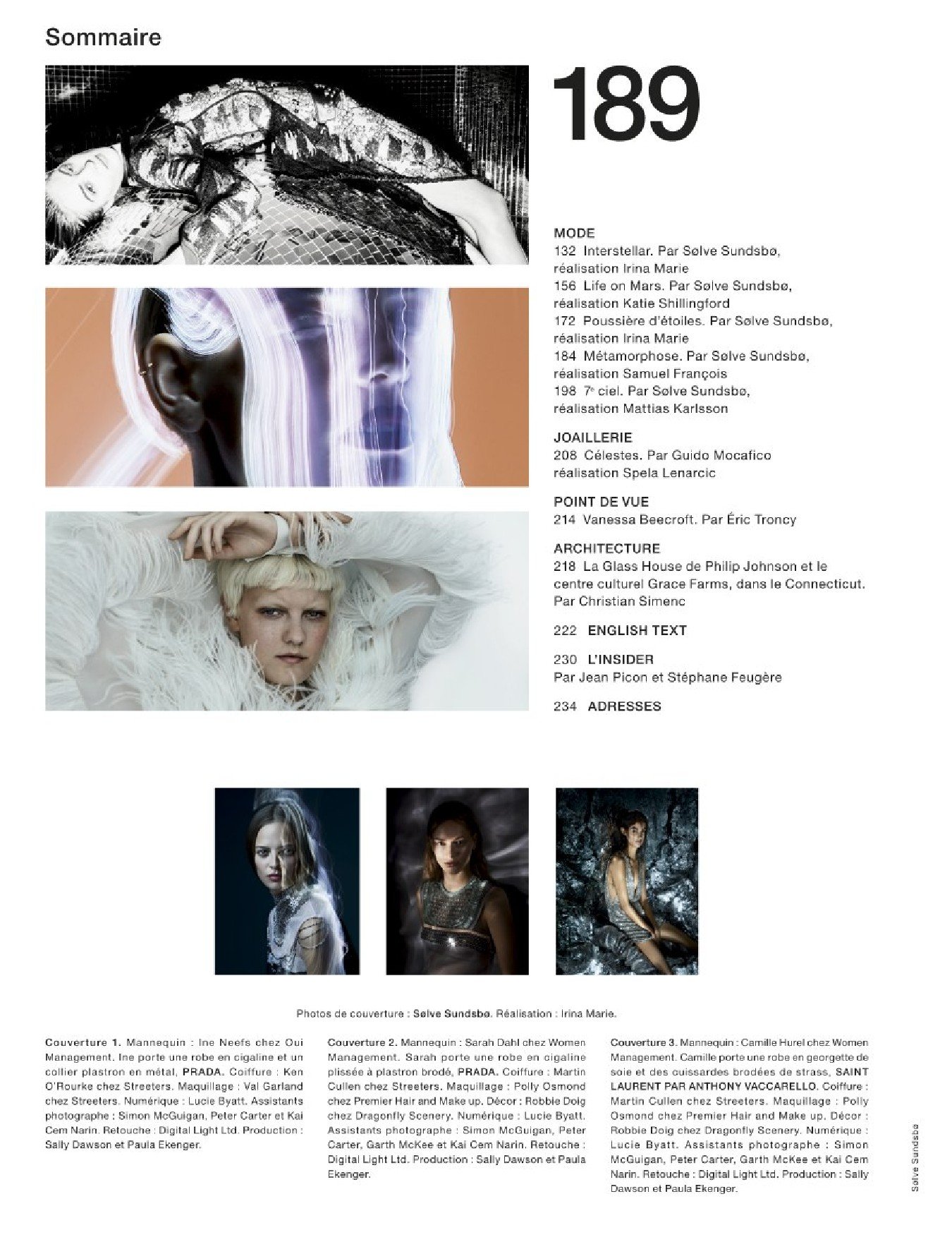 Un Numéro exceptionnel en collaboration avec Solve Sundsbo qui a réalisé l’intégralité des séries mode de ce Numéro stellaire. Esquisse de Donatella Versace et interview vérité de Pierre Niney, acteur magistral. William Forsythe, chorégraphe star manie l’art du mouvement.