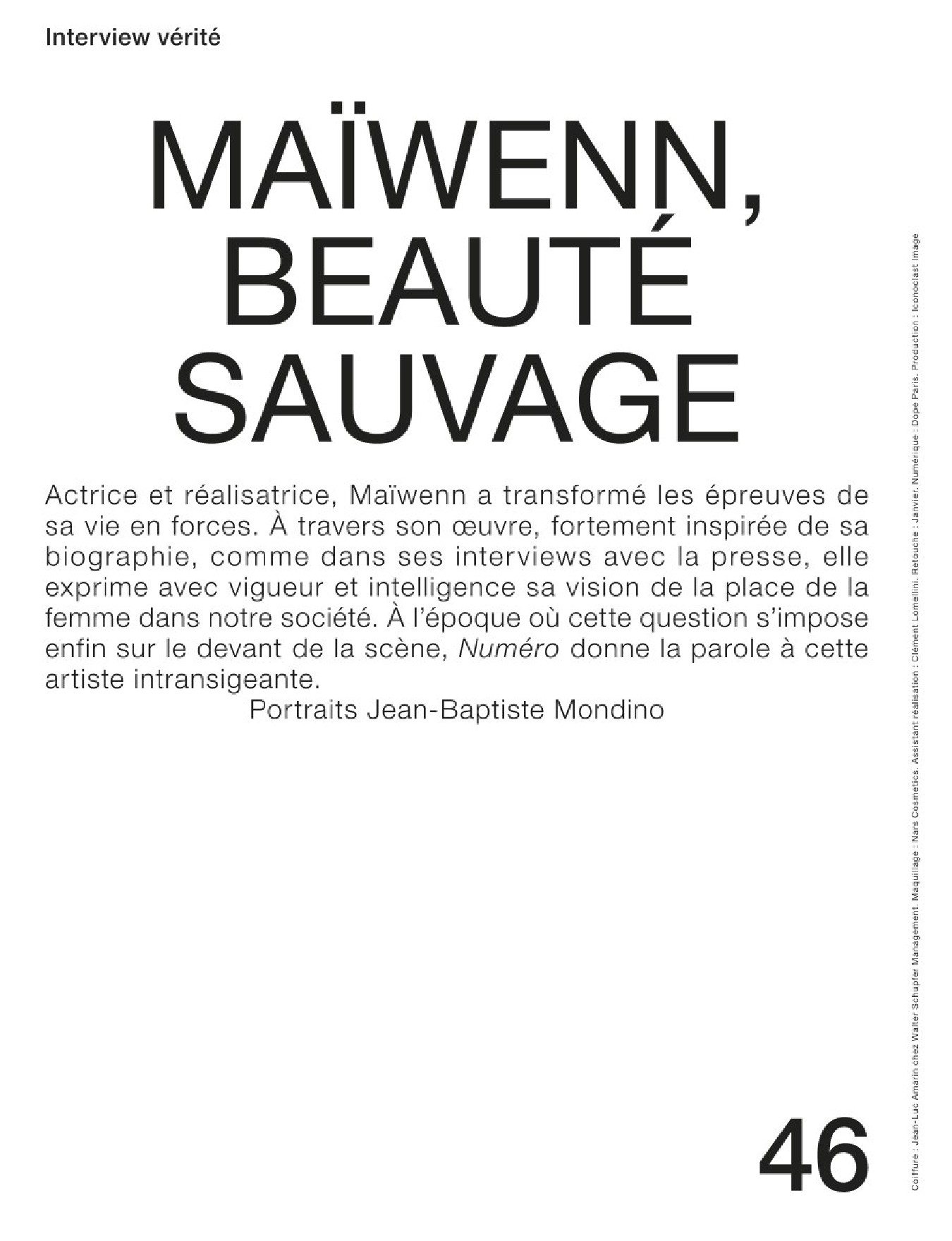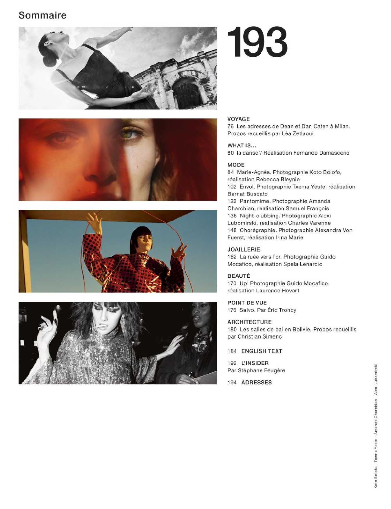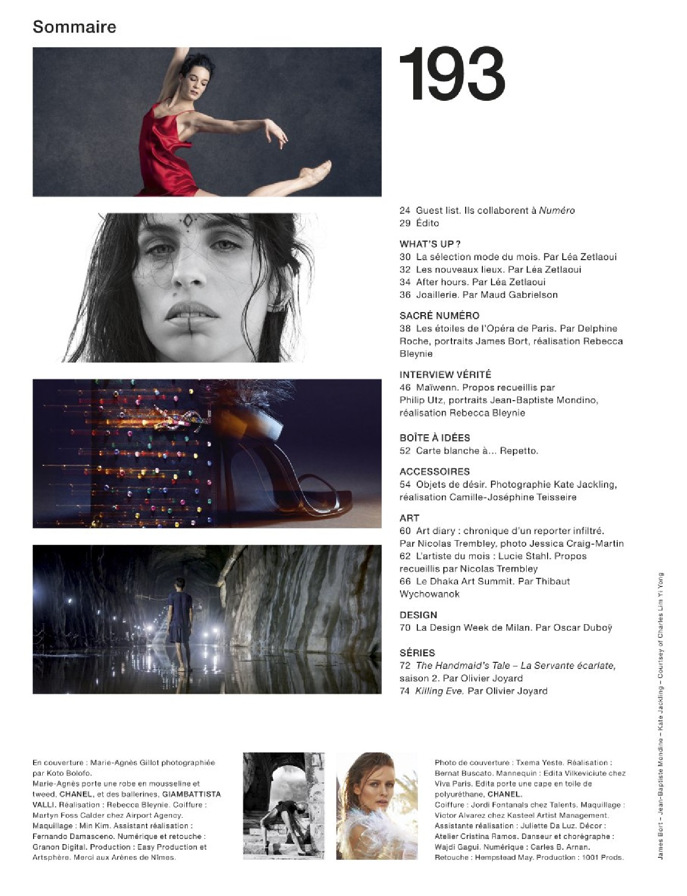 Un Numéro dédié à la danse, avec une série exclusive consacrée à Marie-Agnès Gillo par Koto Bolofo, exposée du 26 avril au 4 mai au Studio des Acacias; une interview vérité de Maïwenn et une série mode avec les danseurs étoiles de l’Opéra de Paris.