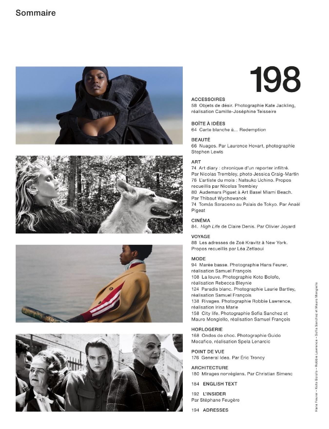 Une rencontre avec Tilda Swinton, héroïne du Suspiria de Luca Guadagnino, une interview de Haider Ackermann créateur ovationné lors de la Fashion Week de Paris, les confessions de Neneh Cherry, de retour avec son album Broken Politics, les céramiques de l’artiste japonaise Natusko Uchino, les toiles d’araignée de Tomás Saraceno au Palais de Tokyo, le nouveau long-métrage de Claire Denis, High Life, avec Robert Pattison et Juliette Binoche, les oeuvres spectaculaires de la maison de haute horlogerie Audemar Piguet, les adresses de la nouvelle égérie du parfum Black Opium d’Yves Saint Laurent, Zoë Kravitz, à New York et les séries mode de Sofia Sanchez et Mauro Mongiello, Hans Feurer, Koto Bolofo, Laurie Bartley et Robbie Lawrence.