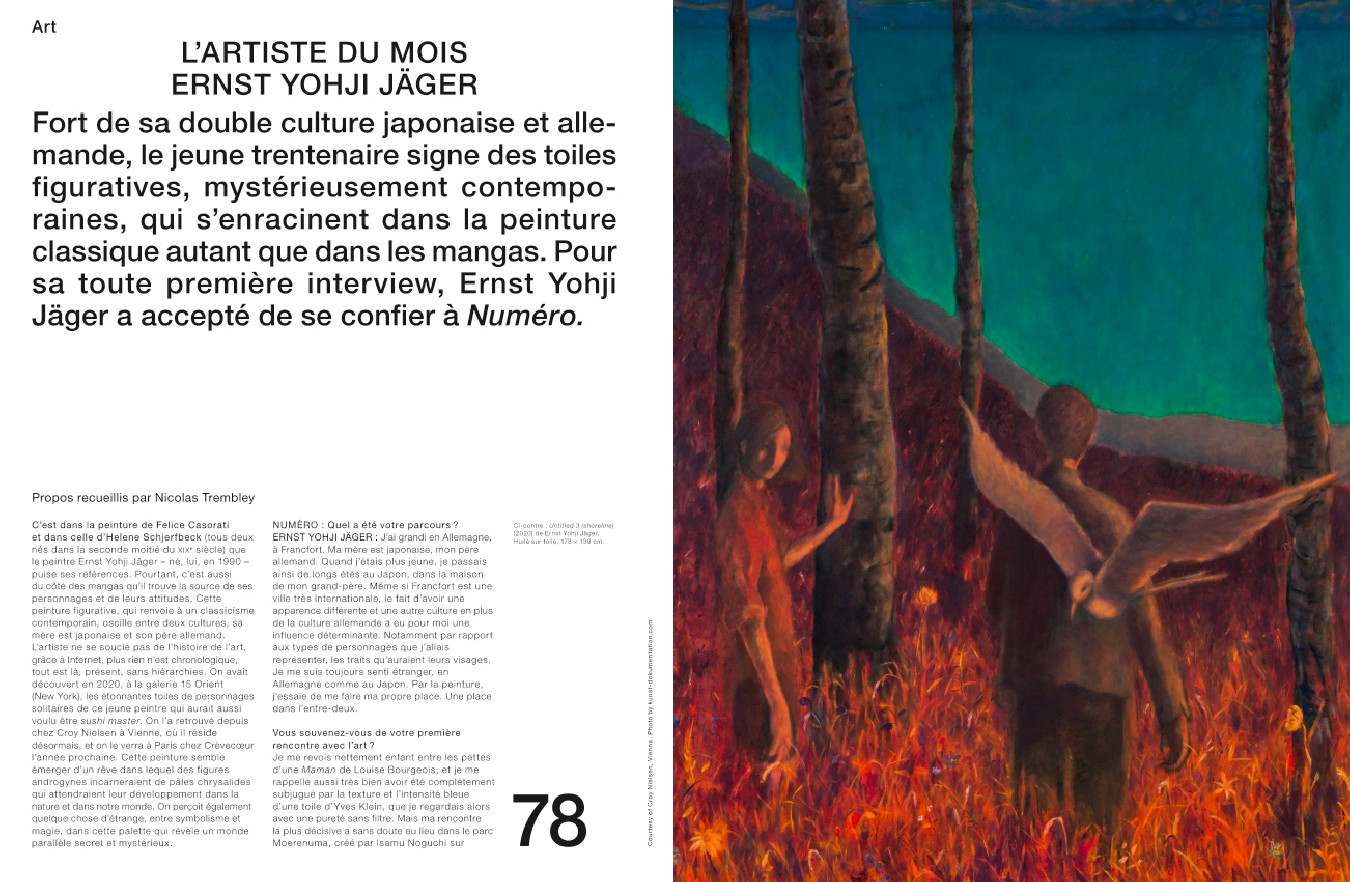 Numéro rend hommage à Alber Elbaz, le maestro célébré lors de la dernière Fashion Week avec un défilé magistral, et célèbre la chanteuse Lolo Zouaï, l’une des voix les plus prisées de sa génération, dans une série mode exclusive signée Colin Solal Cardo. Egalement au sommaire de ce Numéro : une rencontre avec l’artiste contemporain Ernst Yohji Jäger, connu pour ses toiles figuratives mêlant peinture classique et mangas ; Memoria, le dernier film du réalisateur culte Apichatpong Weerasethakul ; un focus sur la série féministe H24 – 24 heures dans la vie d’une femme, diffusée sur Arte, qui dénonce les violences sexistes que vivent les femmes ; un portrait de la peintre américaine Georgia O’Keeffe, mise à l’honneur dans une exposition exceptionnelle au Centre Pompidou ; et les séries mode de Dan Beleiu, Elina Kechicheva, Txema Yeste, Sofia Sanchez & Mauro Mongiello, Dominique Issermann et Andrew Vowles.
