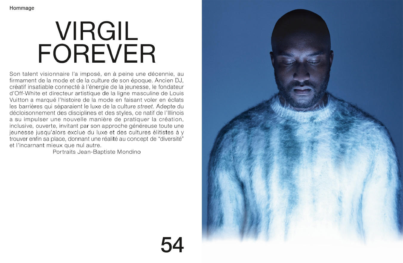 Un hommage au designer visionnaire Virgil Abloh, fondateur du label Off-White et ancien directeur artistique de Louis Vuitton homme disparu trop tôt ; une rencontre exclusive avec Shygirl, la jeune musicienne londonienne aux morceaux hypnotiques et aux textes provocateurs, accompagnée d’une série mode exclusive signée Colin Solal Cardo ; une interview du jeune créateur Ludovic de Saint Sernin, dont la mode prône un érotisme solaire au-delà des genres ; la célébration de l’immense couturier Yves Saint Laurent par une exposition d’ampleur déployée dans six grands musées parisiens ; la jeune créatrice de lingerie australienne Michaela Stark, dont les pièces bousculent les idéaux des corps standardisés ; la redécouverte de sœur Mary Corita Kent, la nonne devenue figure du pop art ; la musicienne américaine Lyra Pramuk, nouvelle pépite de l’électro-acoustique ; une interview de l’artiste hongrois Szabolcs Bozó, dont les peintures déploient un carnaval de créatures colorées ; et les séries mode de Jean-Baptiste Mondino, Txema Yeste, Koto Bolofo, Sofia et Mauro, Jacob Sutton, Lee Wei Swee et Yulia Gorbachenko.