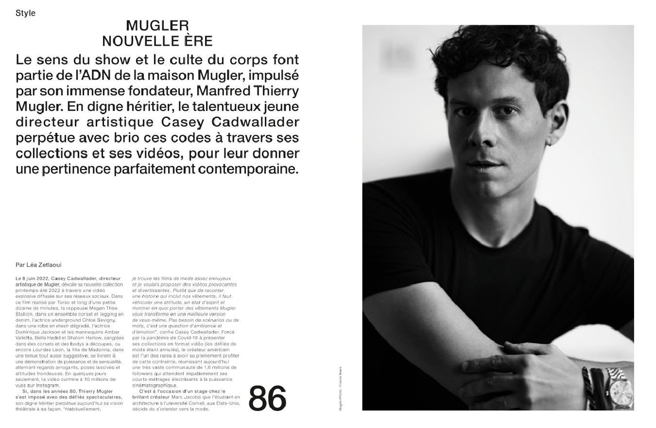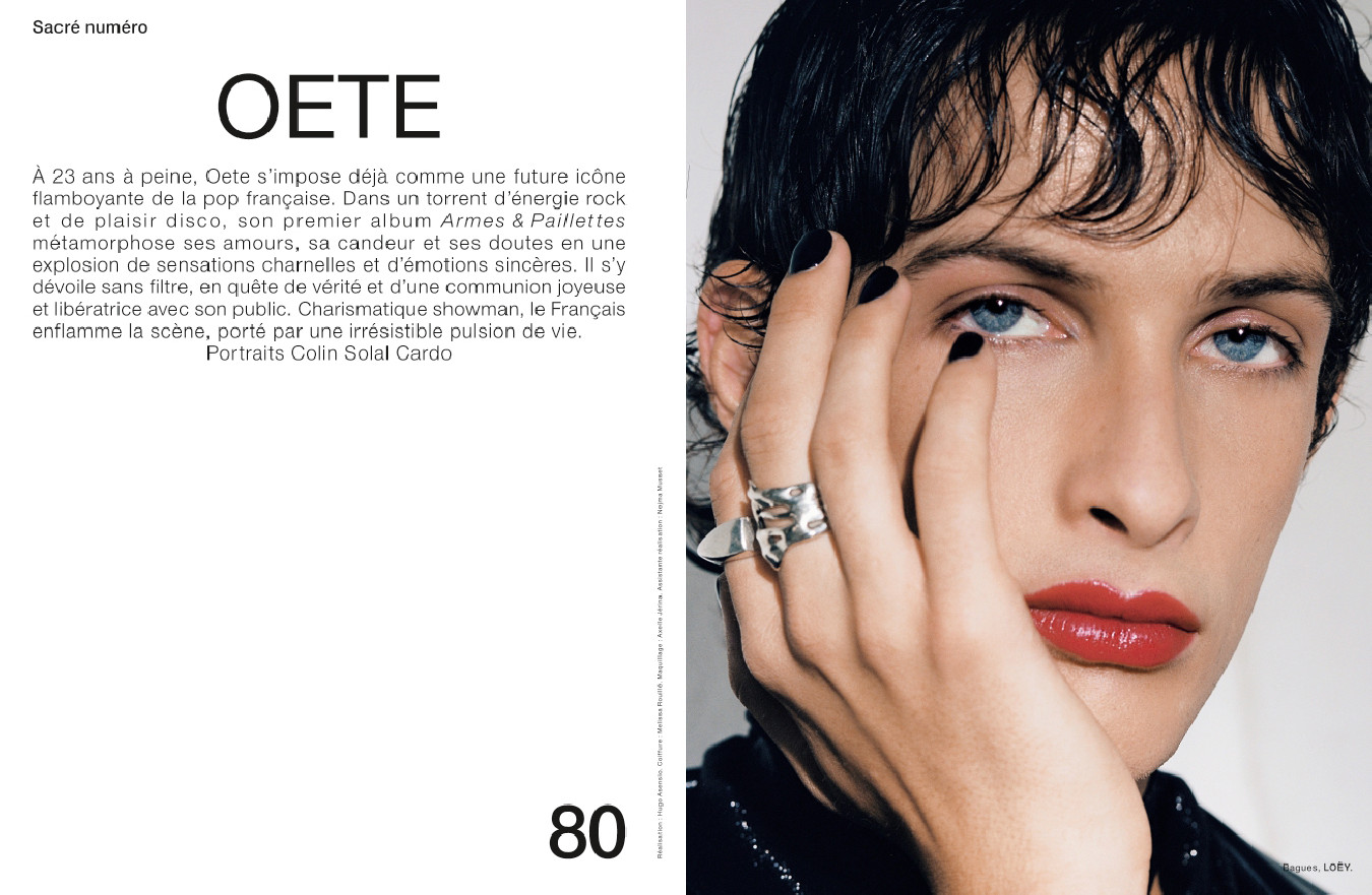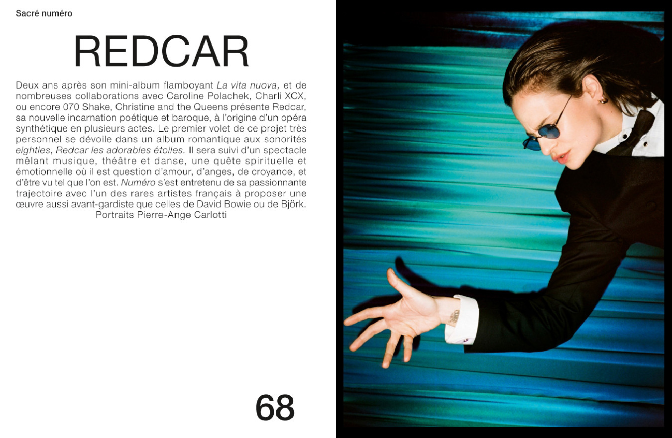 Une rencontre exclusive avec Christine and the Queens, qui présente Redcar, son nouveau projet musical poétique et flamboyant ; une interview de la chanteuse Lous and the Yakuza à l’occasion de la sortie de son deuxième album Iota ; un portrait de l’artiste Oete, future icône de la pop française à seulement 23 ans ; une rencontre avec Casey Cadwallader, talentueux créateur qui a pris avec brio les rênes de la maison Mugler en 2018 ; un focus sur le duo Gerard & Kelly, dont l’œuvre mêlant la danse, les arts plastiques et le cinéma fait l’objet d’une exposition au Carré d’art à Nîmes ; le producteur Jeremy Thomas, dont le film Hi-Han a remporté le prix du Jury à Cannes ; Un beau matin, le nouveau film de Mia Hansen-Løve avec Léa Seydoux ; la sculptrice Carol Bove, bientôt exposée à la galerie David Zwirner ; les portraits énigmatiques de l’artiste viennoise Marina Faust ; la mutante contemporaine revisitée par le photographe Jean-Baptiste Mondino et Babeth Djian ; et les séries mode de Bastiaan Woudt, Damien Krisl, Umit Savaci, Szilveszter Mako, Yulia Gorbachenko et Noël Quintela.