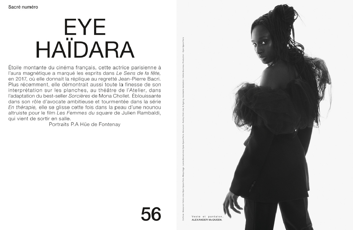 Une rencontre exclusive avec la jeune actrice parisienne Eye Haïdara, star du film Les Femmes du square de Julien Rambaldi, photographiée ici par P.A. Hüe de Fontenay ; un portait de la DJ et productrice de musique électronique Honey Dijon, des clubs underground aux plus grands défilés de mode ; un entretien avec le créateur français Simon Porte Jacquemus, qui revient sur la success story de son label ; Thomas du Pré de Saint Maur se confie sur Le Grand Numéro de Chanel, manifestation d’ampleur organisée par la maison en décembre à Paris ; un portrait de Stephen Jones, modiste iconoclaste qui réalise des chapeaux pour les plus grands noms de la mode depuis quarante ans ; la redécouverte de l’artiste Scott Kahn qui évoque souvent la nuit sur ses toiles à travers des paysages oniriques ; et les séries mode de Boris Camaca, Ben Hassett, Szilvester Makó, TIm Richardson, Daniel Roché et Boo George.