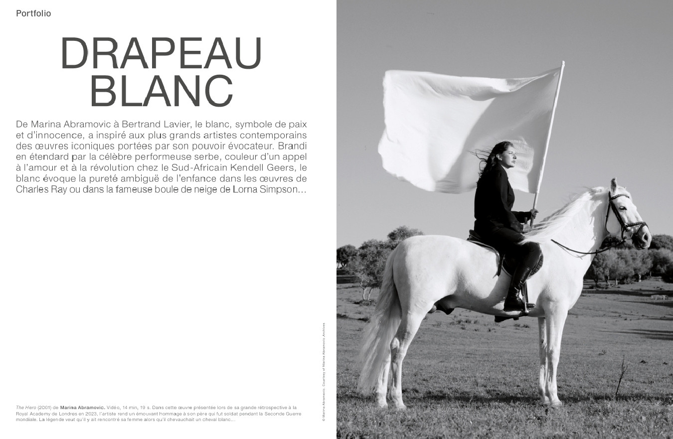 Couleur de paix, d’amour et de pureté, le blanc occupe dans l’histoire de l’art une place centrale depuis des siècles. De Bertrand Lavier à Charles Ray, en passant par Marina Abramovic et David Hammons, plusieurs artistes contemporains s’en sont emparé dans des œuvres marquantes ici réunies dans un portfolio.