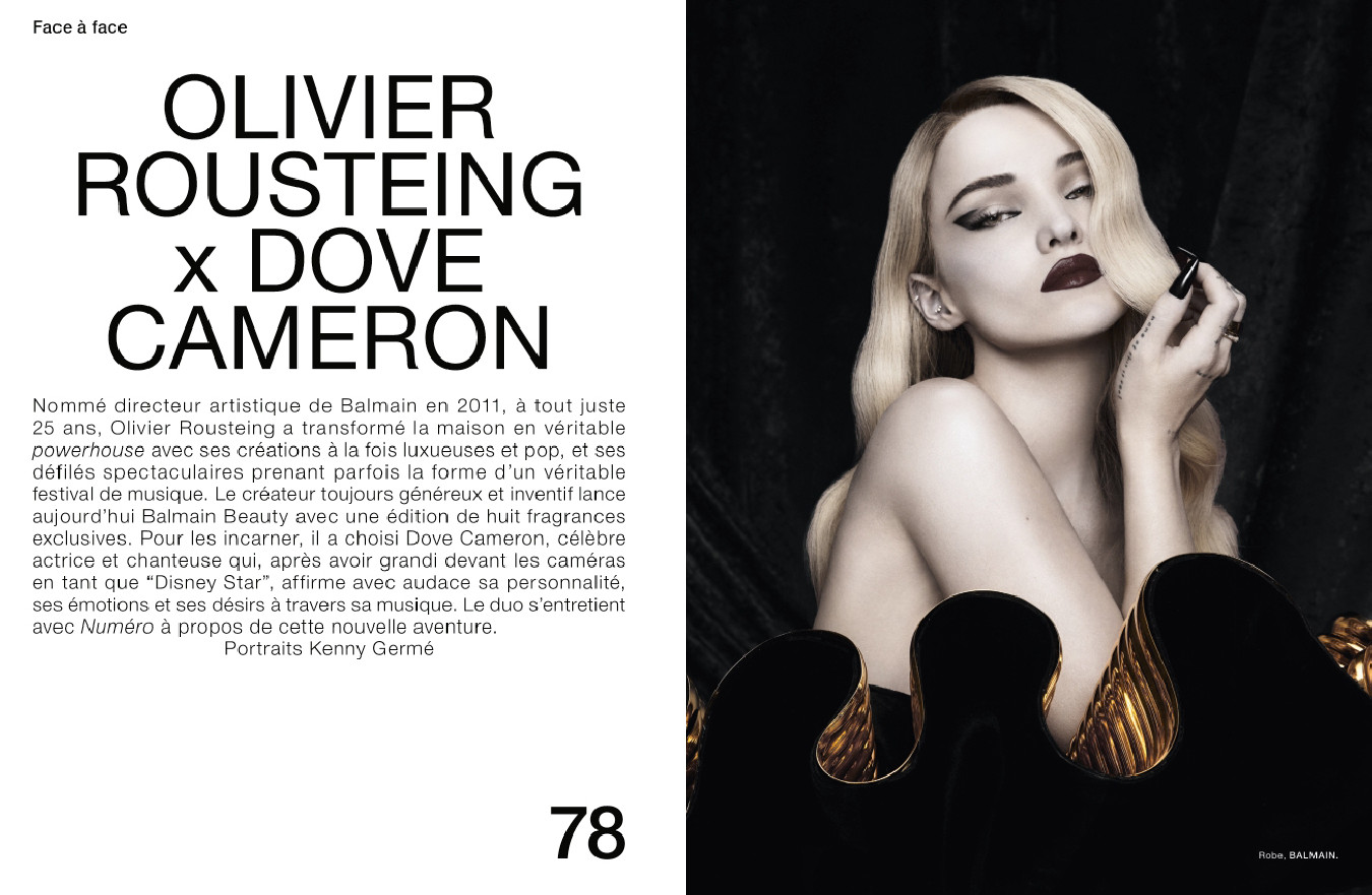 Les confessions de l’actrice iconique Monica Bellucci, photographiée par Jean-Baptiste Mondino, sur ses 30 ans d’amitié avec la maison Dolce&Gabbana ; un face à face entre le grand couturier Jean Paul Gaultier et le jeune créateur Nicolas di Felice, invité en juin dernier à signer la dernière collection haute couture de la maison française ; mais aussi un entretien avec Olivier Rousteing pour le lancement première ligne de beauté Balmain, avec son égérie Dove Cameron, en couverture de ce Numéro sous l’objectif de Kenny Germé