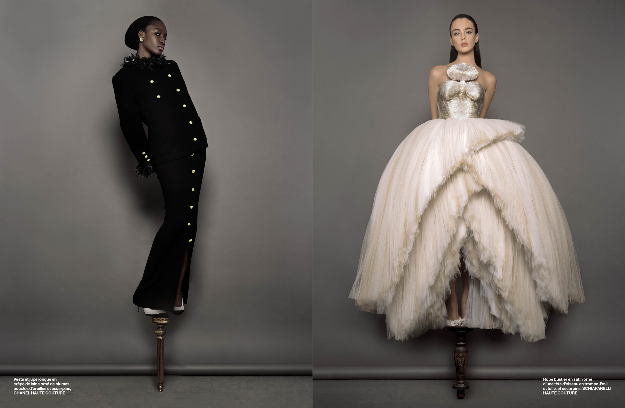 En couverture du Numéro 261, les divines Deva Cassel et Ben Ilamosi subliment avec allure et délicatesse les dernières créations haute couture, devant l’objectif de la très talentueuse photographe Brigitte Niedermair.
