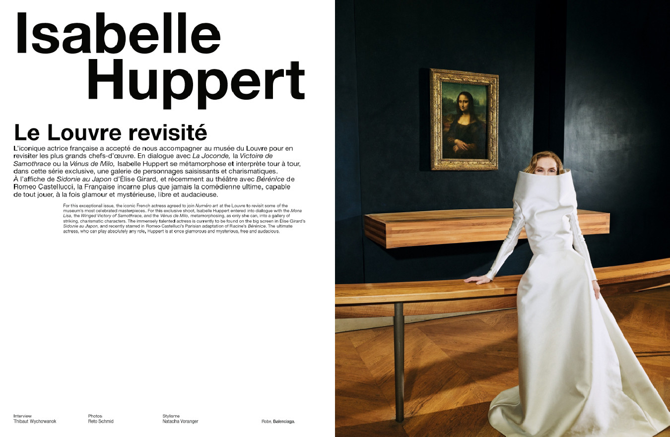Cette saison, l’iconique Isabelle Huppert a accepté d’accompagner Numéro art au musée du Louvre pour en revisiter les plus grands chefs-d’œuvre. En dialogue avec La Joconde, la Victoire de Samothrace ou la Vénus de Milo, l’actrice française se métamorphose et interprète tour à tour, dans cette série exclusive, une galerie de personnages saisissants et charismatiques. Également au sommaire de cette 14ème édition de Numéro art, l’exposition-évènement de la saison avec Pierre Huyghe à Venise et un entretien passionnant avec Martha Jungwirth, immense peintre abstraite aux toiles d’une grande expressivité qui est actuellement célébrée au Palazzo Cini à Venise et au Guggenheim Bilbao… sans oublier les visites d’atelier de légende Takesada Matsutani et de la coqueluche de l’art français Julian Charrière.