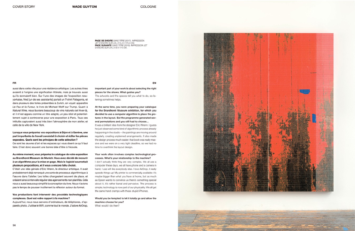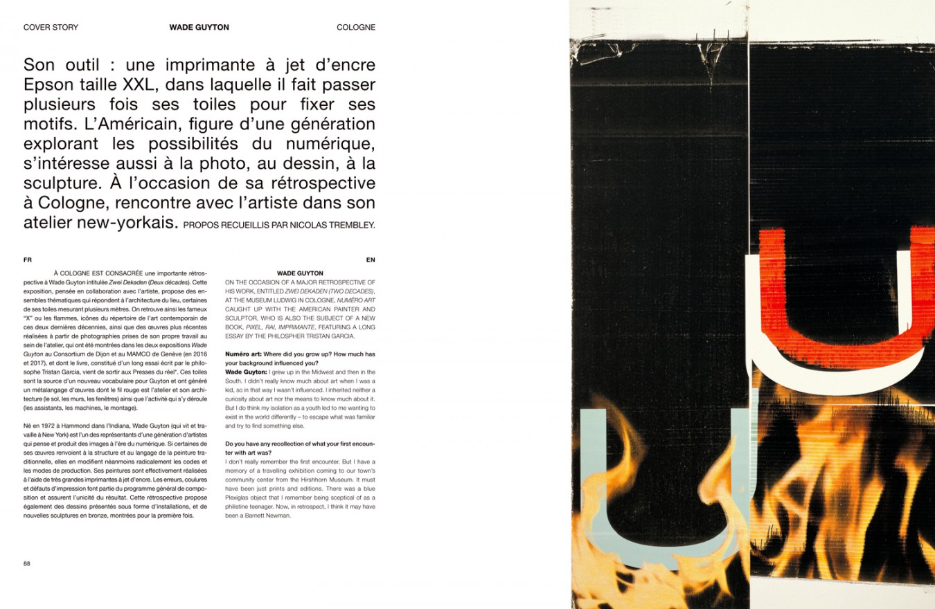 Numéro art, magazine d’exception pour les collectionneurs, consacre un portrait étonnant à l’américain Wade GUYTON, véritable figure d’une génération explorant les possibilités du numérique. Découvrez son interview exceptionnelle dans Numéro art à l’occasion d’une rétrospective majeure à Cologne. Numéro art, c’est aussi toutes les personnalités et évènements qui vont compter jusqu’en février 2020. Avec toujours, le TOP 40 des expositions à ne pas rater.