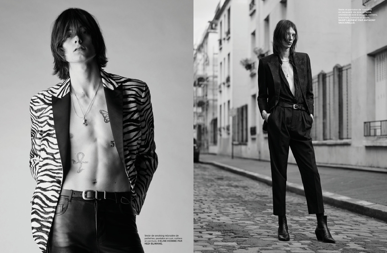 L’ascension fulgurante du label AMI par Alexandre Mattiussi, qui fêtait ses dix ans en 2021 ; la fine fleur des jeunes créateurs de la mode masculine, de Ludovic de Saint Sernin à Thebe Magugu en passant par Charles Jeffrey ; Mahmood, nouvelle star de la pop italienne qui représentera l’Italie avec Blanco au concours de l’Eurovision ; une rencontre avec le rappeur français mythique MC Solaar ; une enquête sur les femminielli, représentants du troisième genre à Naples photographiés ici par Pieter Hugo ; le peintre américain Kehinde Wiley, auteur du portrait officiel de Barack Obama qui l’a hissé au rang de star planétaire ; et les séries mode de Horst Diekgerdes, Jacob Sutton, Jean-Baptiste Mondino, Jackie Nickerson et Pierre-Ange Carlotti.
