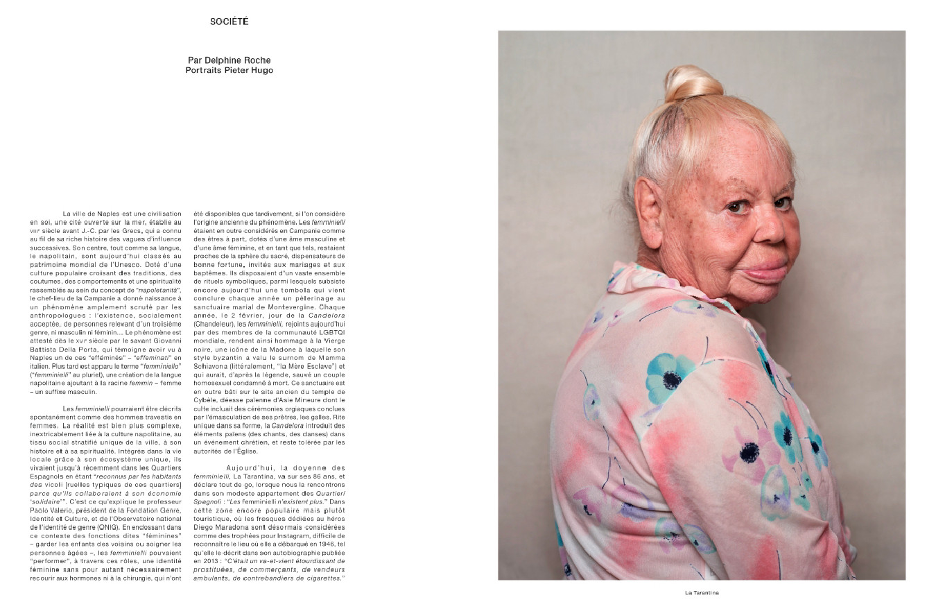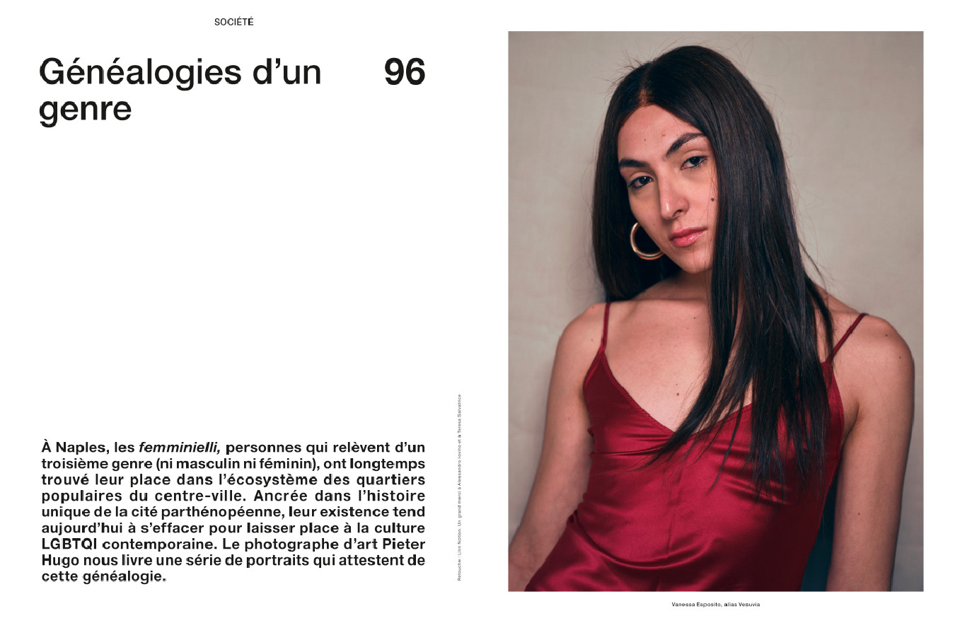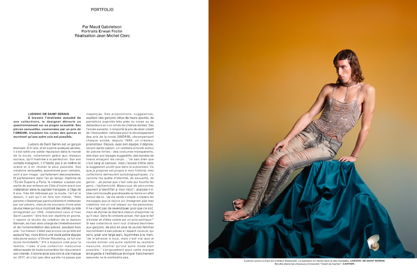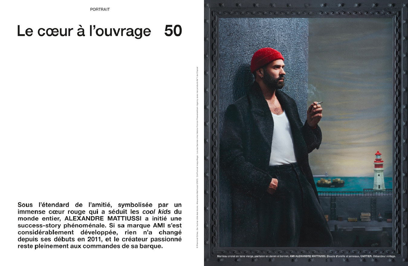 L’ascension fulgurante du label AMI par Alexandre Mattiussi, qui fêtait ses dix ans en 2021 ; la fine fleur des jeunes créateurs de la mode masculine, de Ludovic de Saint Sernin à Thebe Magugu en passant par Charles Jeffrey ; Mahmood, nouvelle star de la pop italienne qui représentera l’Italie avec Blanco au concours de l’Eurovision ; une rencontre avec le rappeur français mythique MC Solaar ; une enquête sur les femminielli, représentants du troisième genre à Naples photographiés ici par Pieter Hugo ; le peintre américain Kehinde Wiley, auteur du portrait officiel de Barack Obama qui l’a hissé au rang de star planétaire ; et les séries mode de Horst Diekgerdes, Jacob Sutton, Jean-Baptiste Mondino, Jackie Nickerson et Pierre-Ange Carlotti.